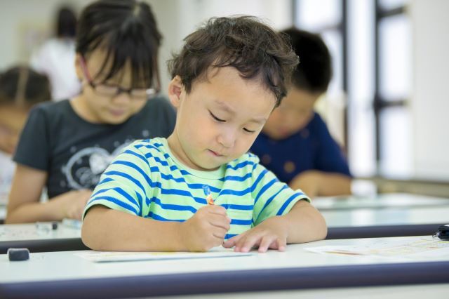 公文式(公文/くもん/KUMON)では、年齢や学年の枠にとらわれず、一人ひとりに応じた教材を個人別で学習します。
